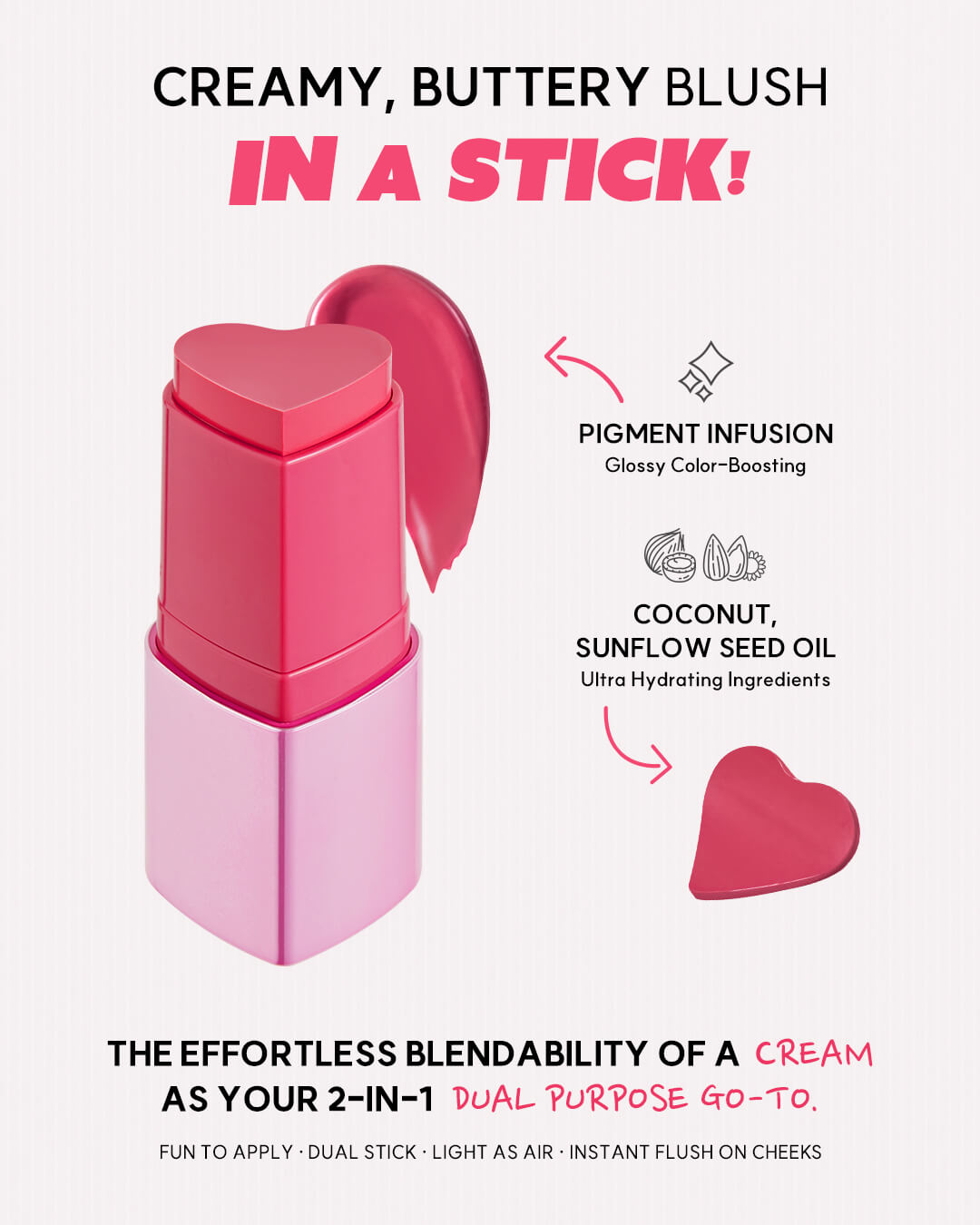 BOLD AND VIVID: The Heart Blush gives a bold and vivid color payoff that intensifies with each application.