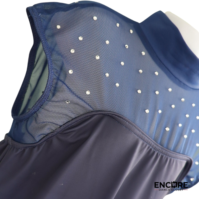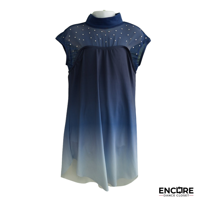 Navy ombré shift dress with rhinestone detailing on the yoke. Dreamy and elegant — a lyrical standout with subtle shimmer.